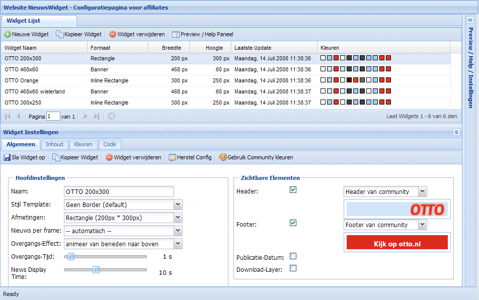 Qlikworld heeft een overzichtelijke backoffice voorzien waarin eenvoudig en snel de widget kan worden vorm gegeven en de inhoud van de widget kan worden bepaald. Verschillende afmetingen, kleuren, logo´s en tekstsnelheden zijn eenvoudig samen te stellen. Tevens is er een configuratie pagina beschikbaar die volledig customized kan worden aangeboden in uw affliate marketing programma.